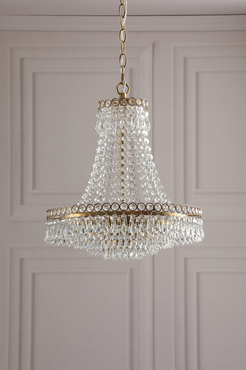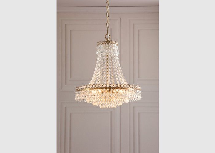 NEW IN - Discover classic elegance with the Laura Ashley Enid 5 Light Chandelier. Delicate crystals hang from rings to form this beautiful pendant, an eye-catching centrepiece that is an effortlessly sophisticated lighting option that is always in style.