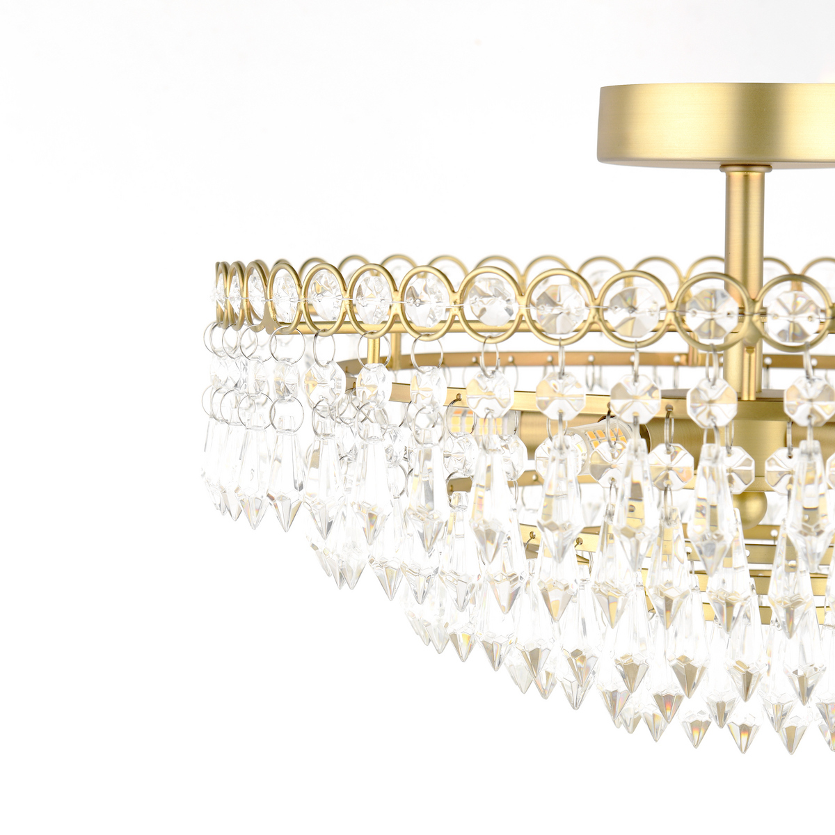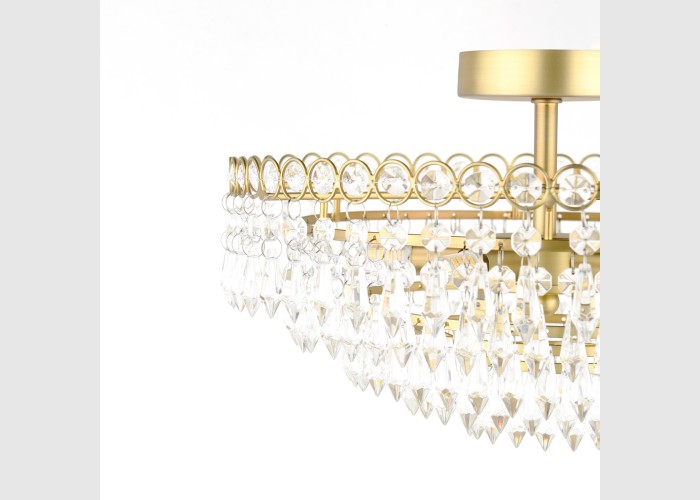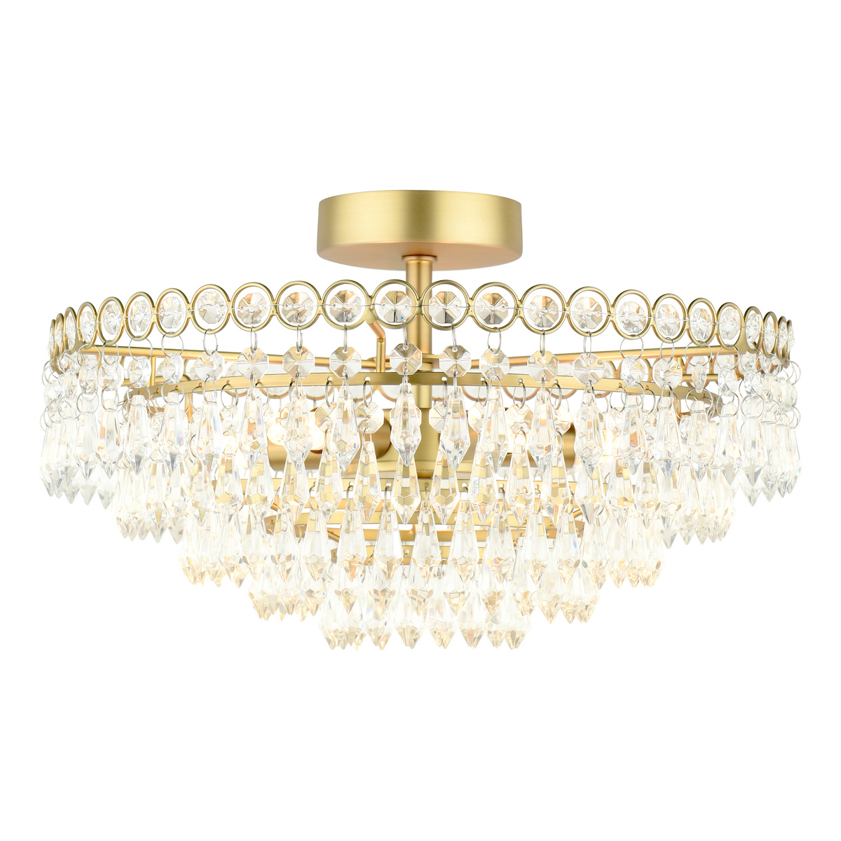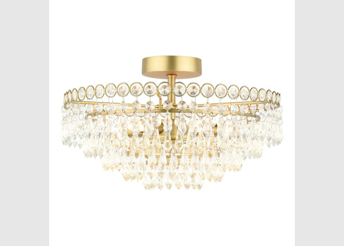 An effortlessly sophisticated lighting option, the Laura Ashley 5 Light Enid Semi-Flush ceiling light boasts a cascade of delicate crystal beads, this opulent French-influenced ceiling light will always be in style. Clear, cut crystals, hand polished to give a smooth surface, are suspended from a metal frame finished with matt antique brass. A semi-flush sits close to the ceiling on a short stem, with no visible cable.