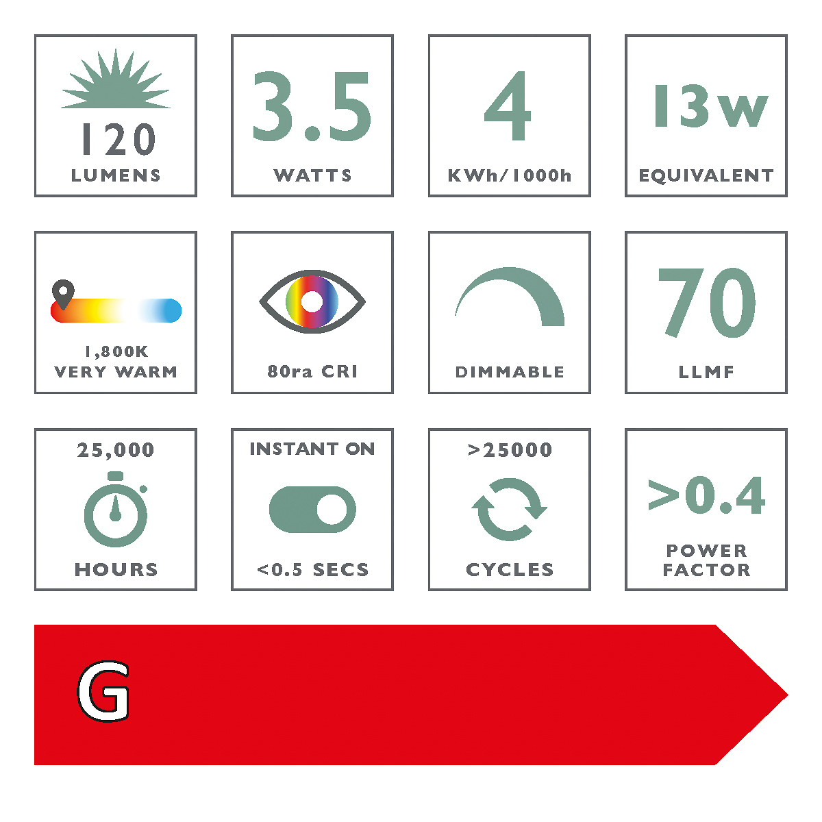 (SOLD AS 5PK) E27 LED DIM VINT RUST MICRO FIL LAMP 3.5W 120LM
