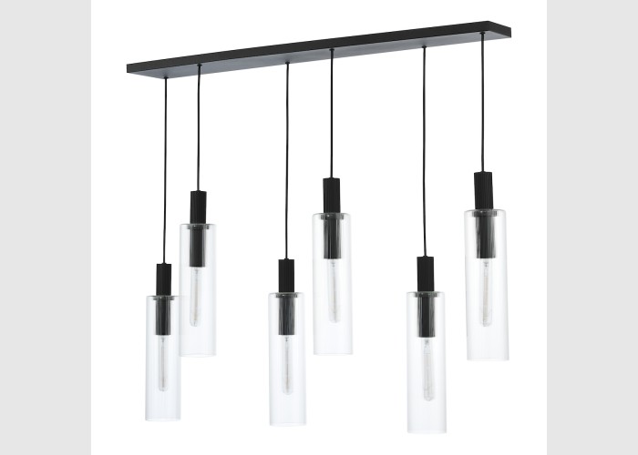Ruben 6 Light Bar Pendant Satin Black and Ribbed Glass