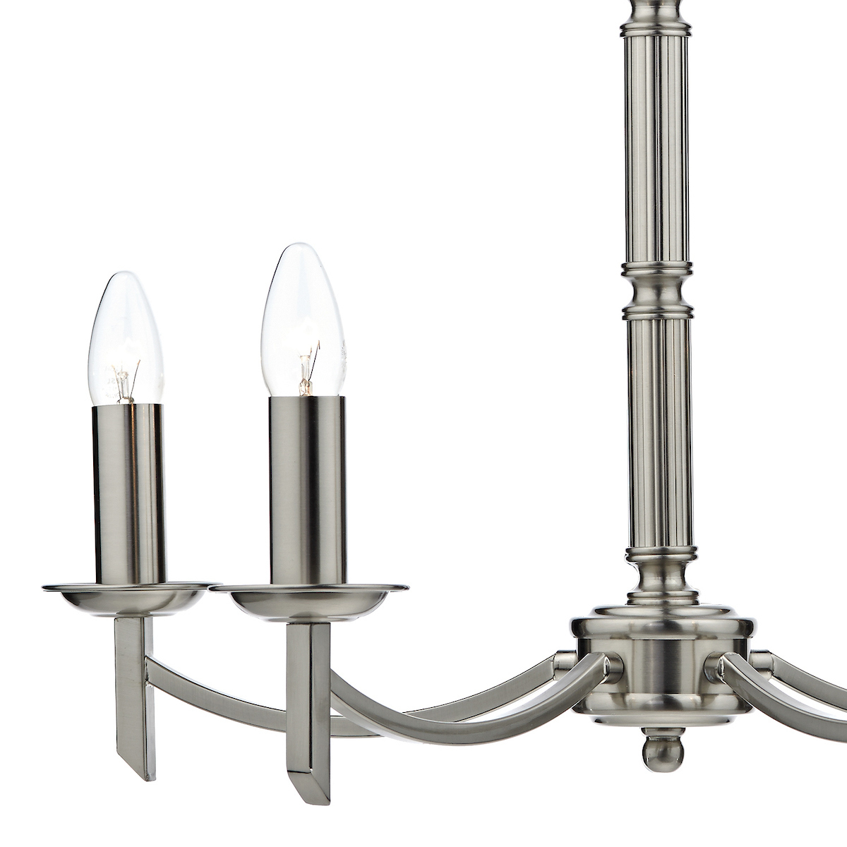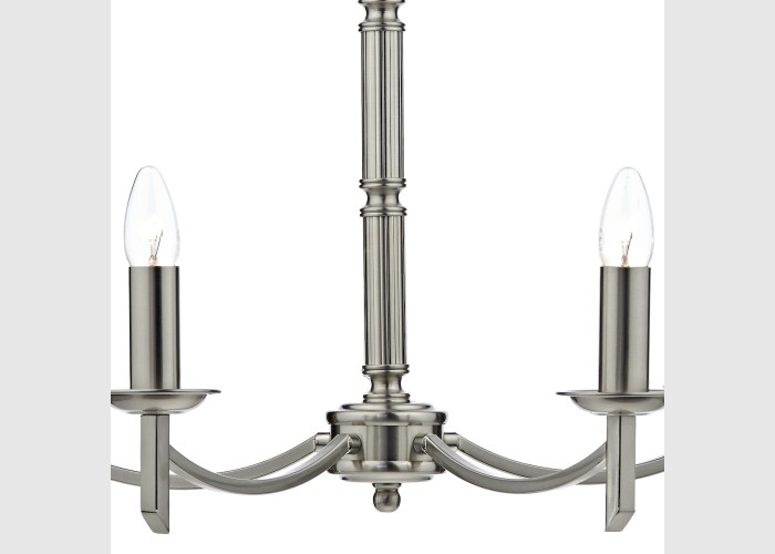 The Ambassador 5 Light Pendant is finished in satin chrome and has a feature ribbed central column.