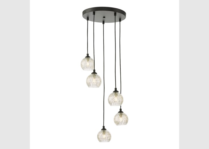 Federico 5 Light Cluster Pendant Black Clear/Wire Glass