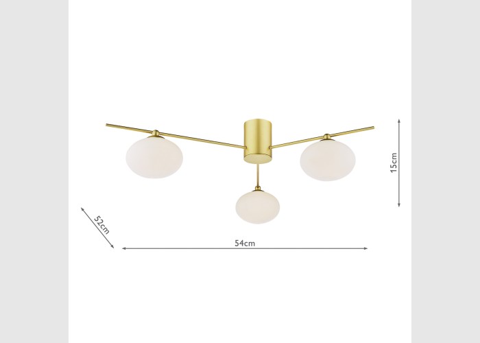 Jasper 3 Light Semi-Flush Satin Gold and Opal Glass