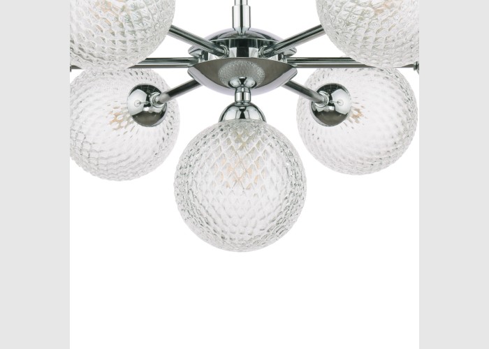 With clear textured glass, the globe shades of the elegant Laura Ashley Atherton Semi-Flush ceiling light from Laura Ashley partially conceal the light bulbs and cast a sparkly light. Featuring a magnificent seven lights, it has a luxurious contemporary look and, with a nod to the Space Age, great mid-century style.