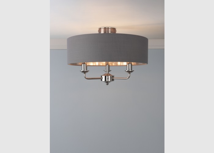 NEW IN - This chic Laura Ashley Sorrento 3 Light Semi Flush features three lights encased in a single contemporary drum shade in light charcoal and a silver metallic inner.
