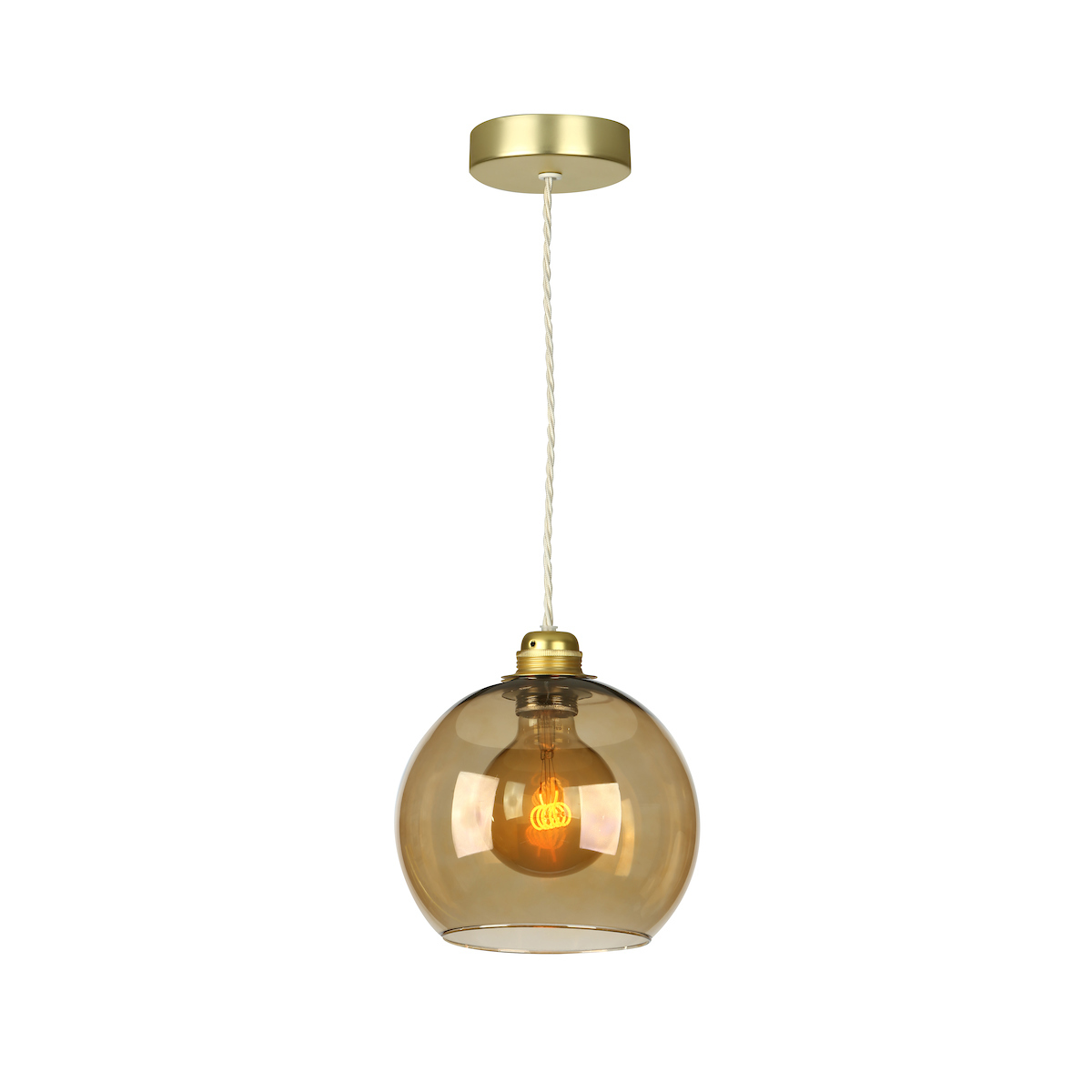 Apollo Single Pendant In Butter Brass Comes With Amber Glass