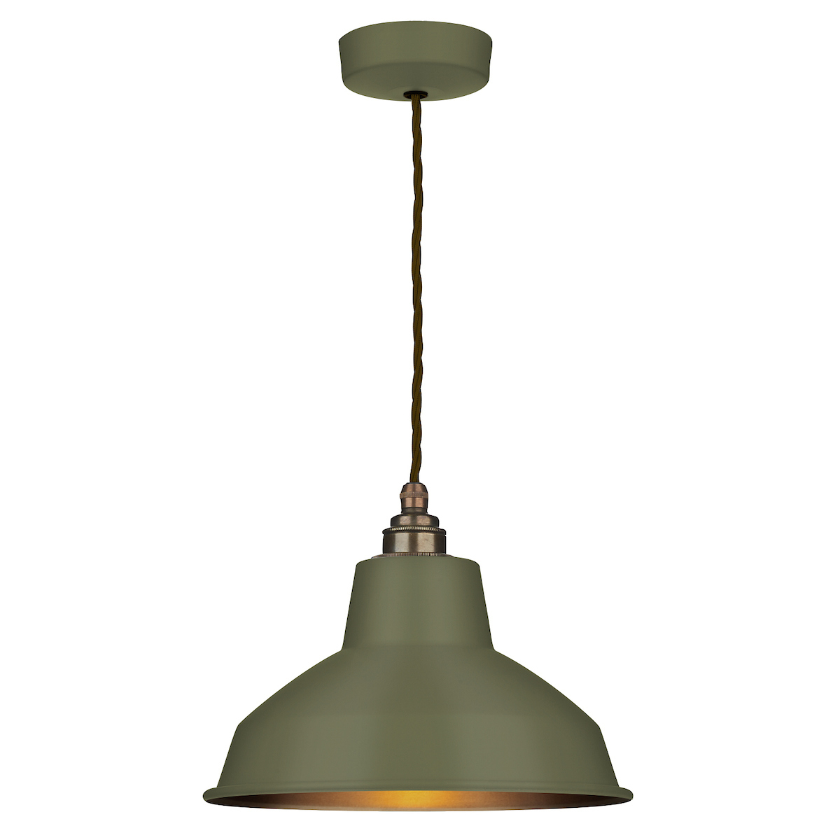 The David Hunt Dexter Pendant is a sleek on-trend design with a nod to industrial fittings; metal shade outer painted in bespoke finish with matching ceiling cup.