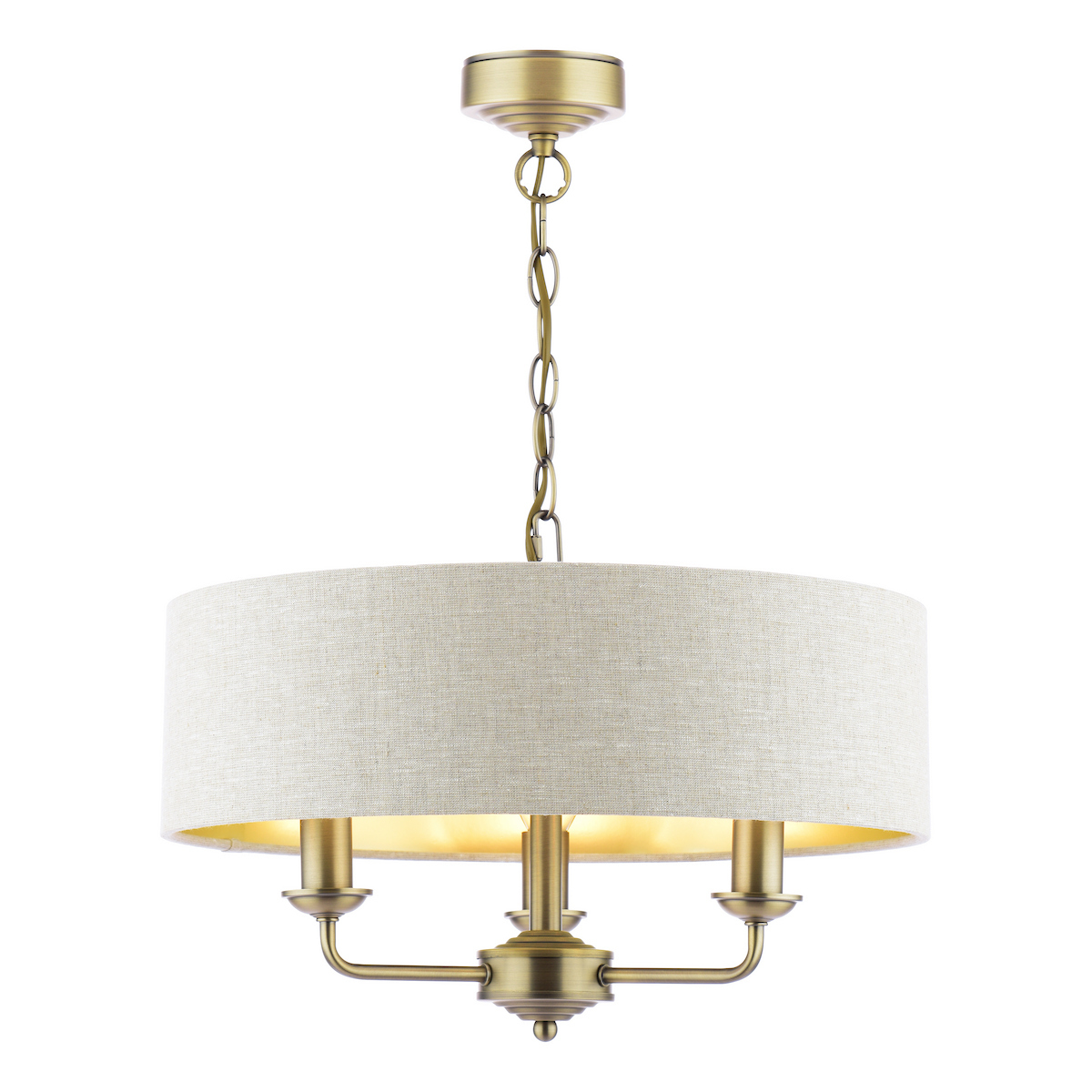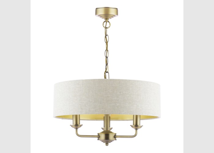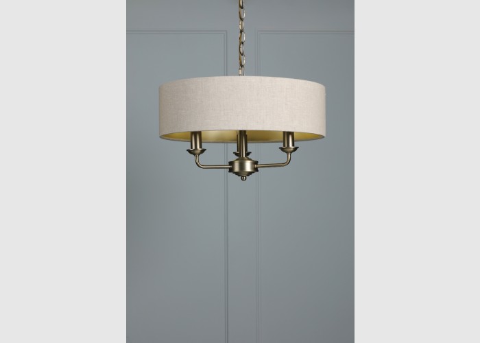 Laura Ashley Sorrento 3 Light Shadelier Matt Antique Brass With Natural Shade