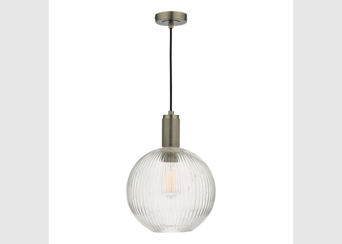 Nikolas Pendant Antique Chrome Ribbed Round Glass