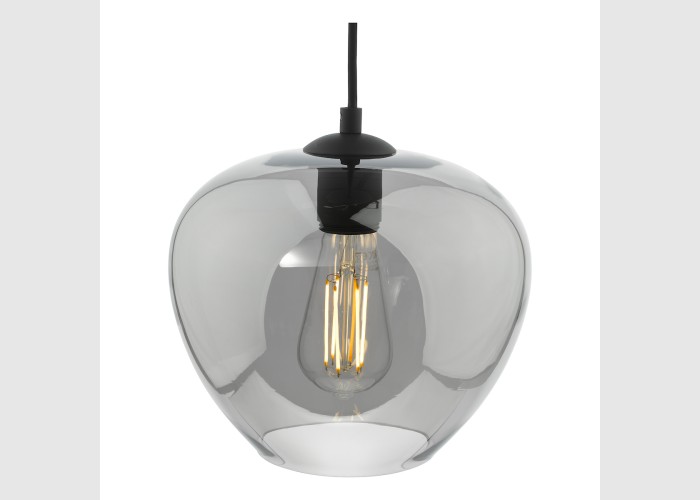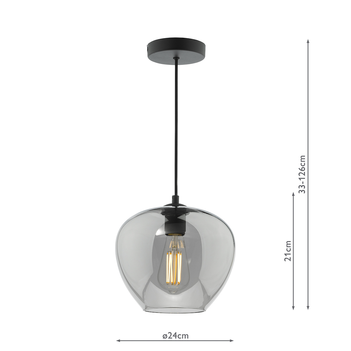 The Shilah Pendant Matt Black and Smoked Glass Pendant features a contemporary tapered shape. The Shilah single pendant features matt black metal work with a smoked glass shade that gives a reflective, diffused glow.