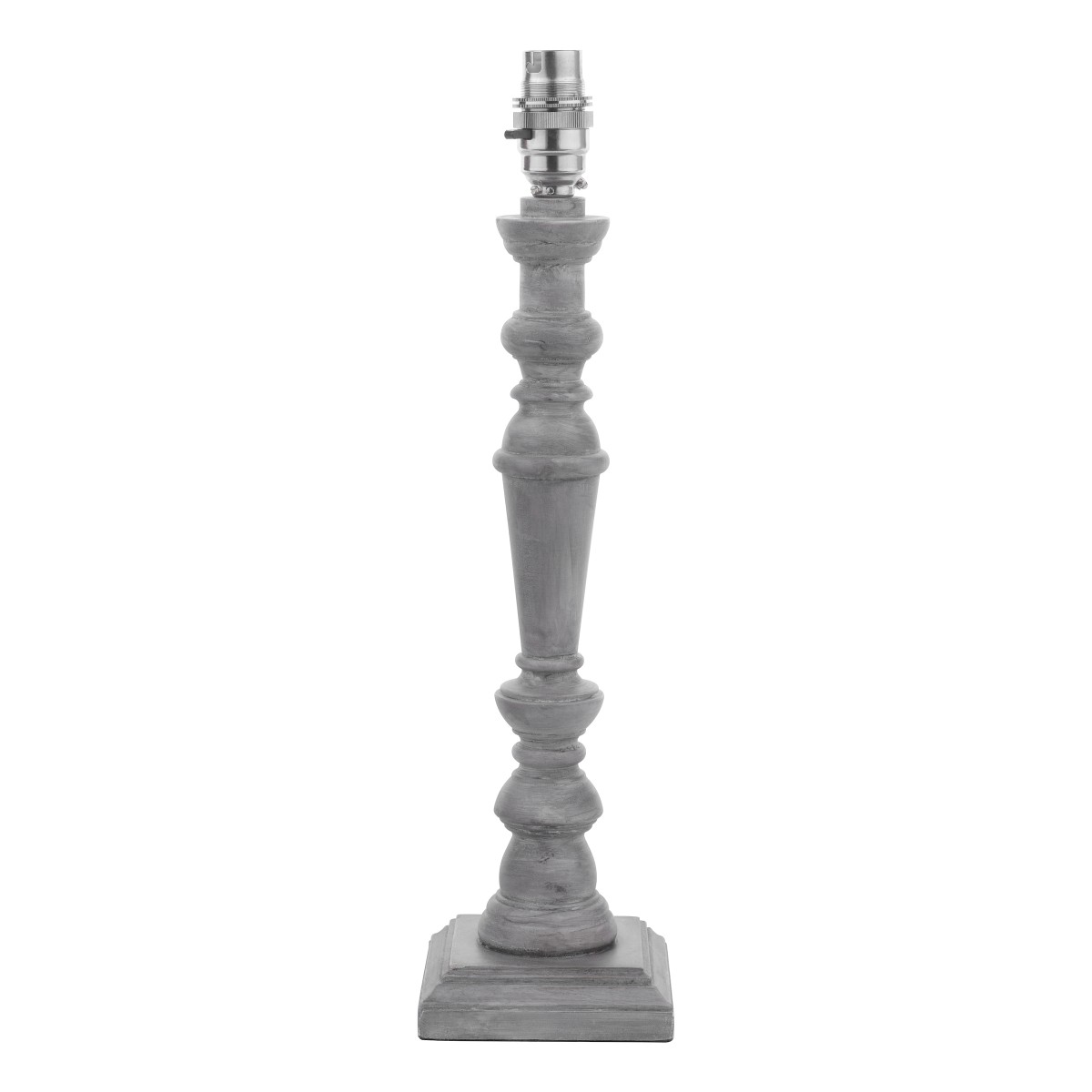The Laura Ashley Tate Table Lamp features features a distressed hand-finished candlestick look. This square based lamp is made of turned wood and is painted in a washed grey colour.