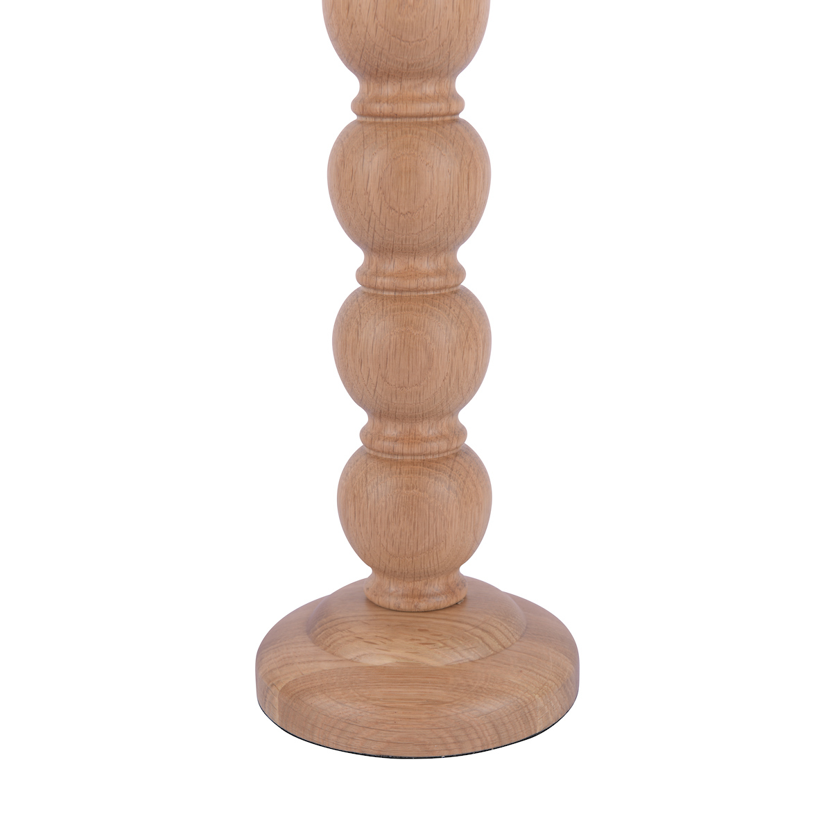 The Laura Ashley Maria Lamp Base is a contemporary classic in a hand made bobble oak wood candlestick shape finished with natural wax to enhance its natural grain.