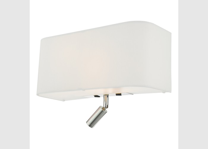 The Ronda 3 Light Wall Light with an ivory silk shade, is a slimline design, protruding less into the room. It features an adjustable LED reading light in a crisp 4000k colour. The acrylic diffusers top and bottom allow for a glare free light. There is a chrome switch plate with an individual switch for the main light and LED reading light.