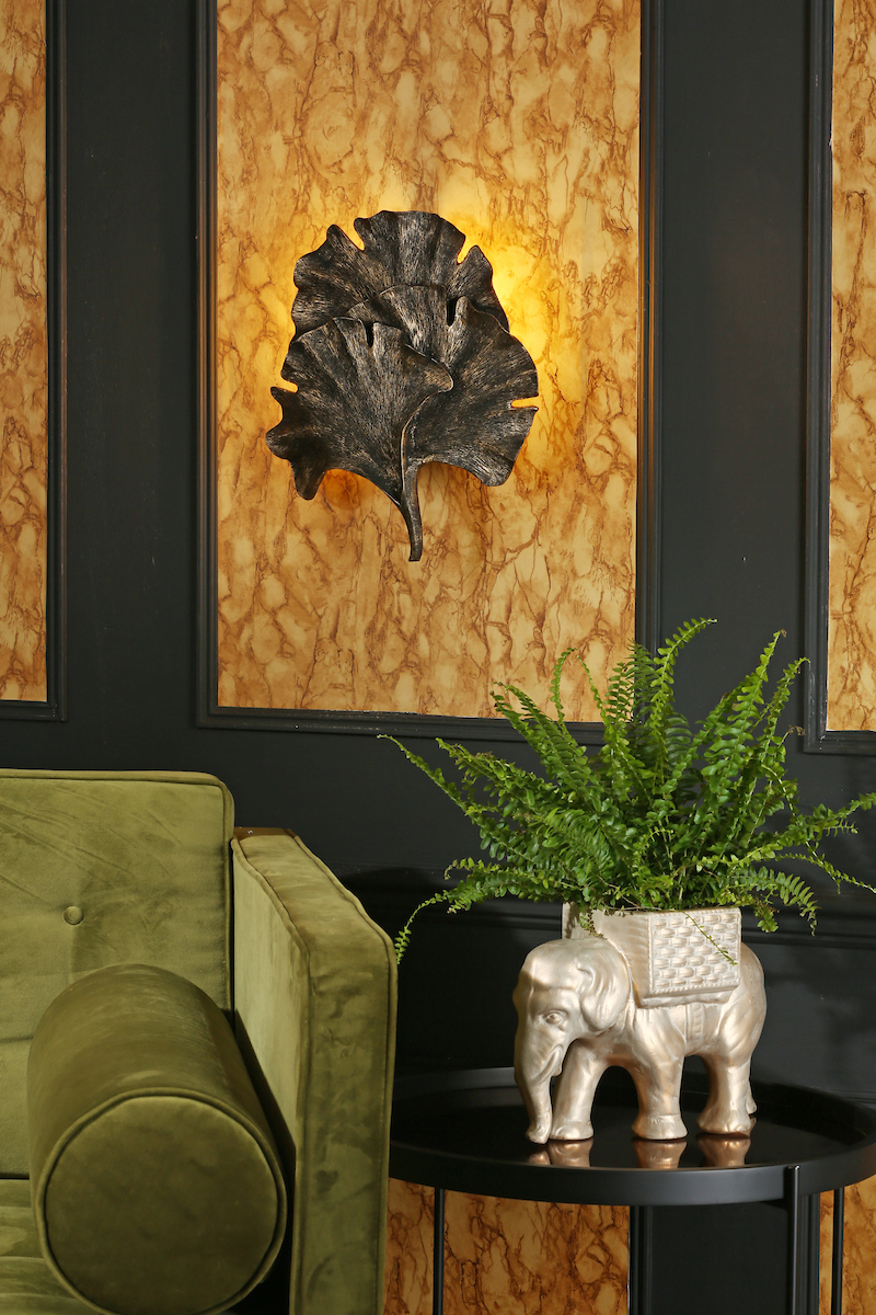 Inspired by its namesake, the David Hunt Gingko Single Wall Light is designed with a trio of gingko leaves radiating outwards in a fan formation to create a wonderfully wall light. A delicate hand painted black and gold finish gives the leaves a soft feel.