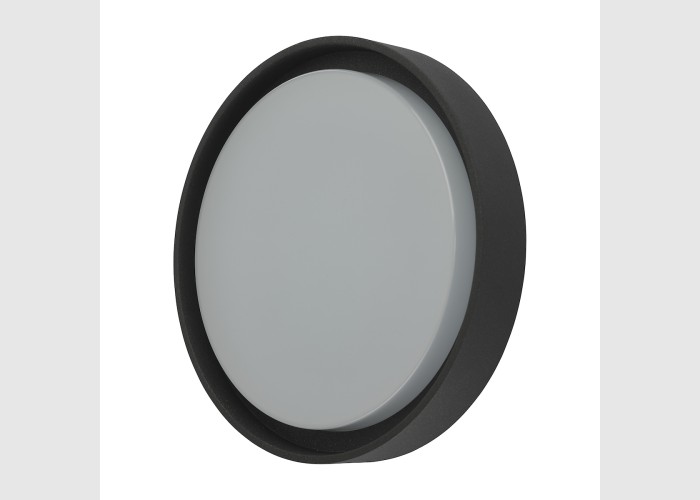 The Ralph Round Outdoor Flush is a large modern bulkhead light with a diecast body and a polycarbonate diffuser.